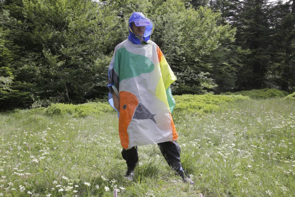 Chaque poncho est accompagné d’une paire de lunette à filtre ultra-violet pour voir comme une abeille et d’une carte-notice, un guide pour profiter pleinement des objets.